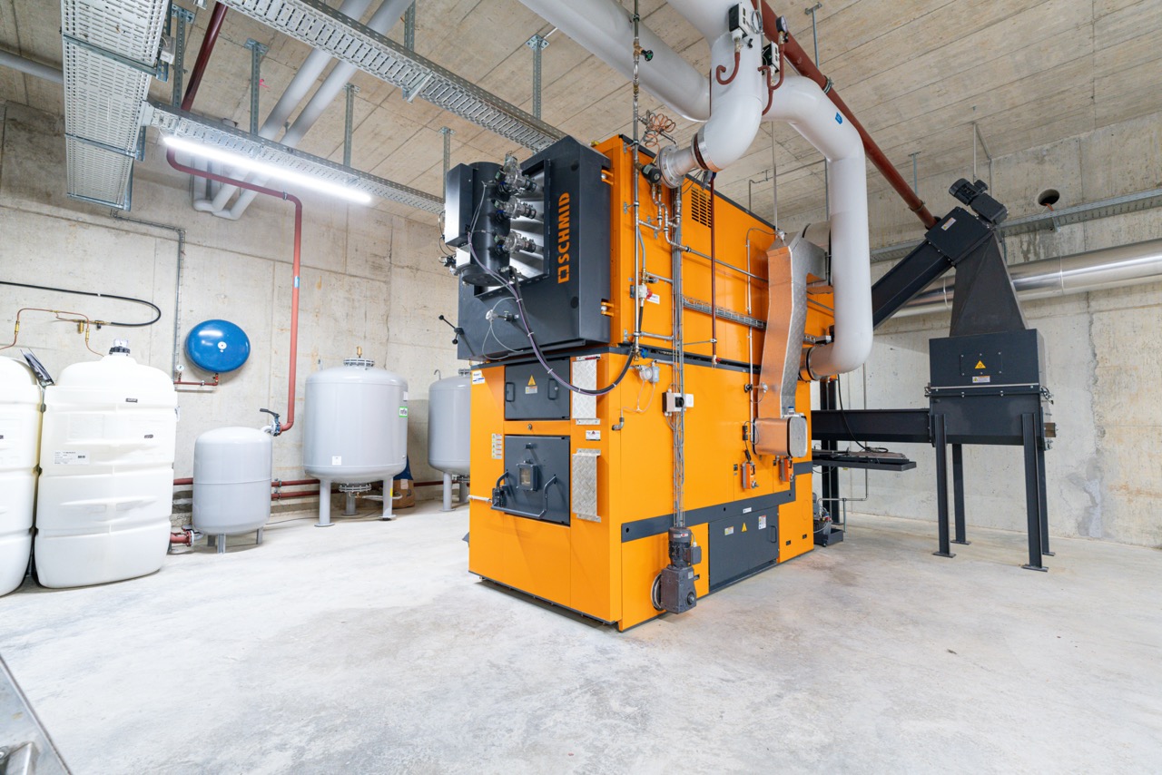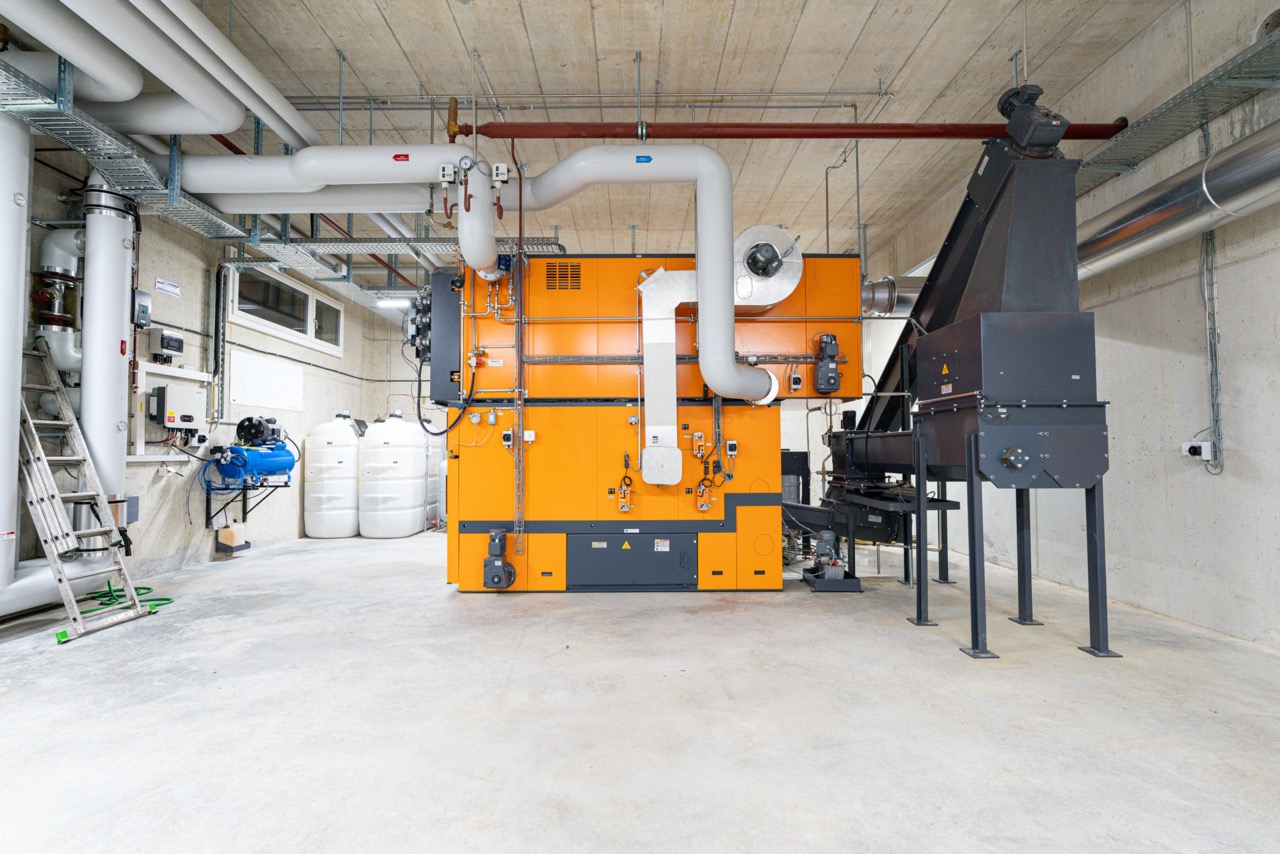 Für die Herdgemeinde Huttwil durften wir beim Neubau der Fernwärmezentrale Wärmeverbund Weieracker die Installation der Anlage ausführen. Diese umfasste in der ersten Etappe einen Holzhackschnitzelkessel mit 550 kW Wärmeleistung, und einen Spitzenlast-Ölheizkessel mit 500 kW. Zur Speicherung der Energie wurde ein 53'000 Liter Energiespeicher verbaut.